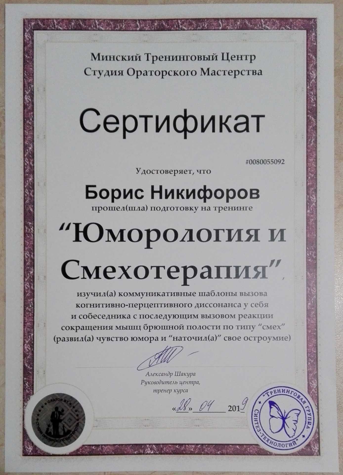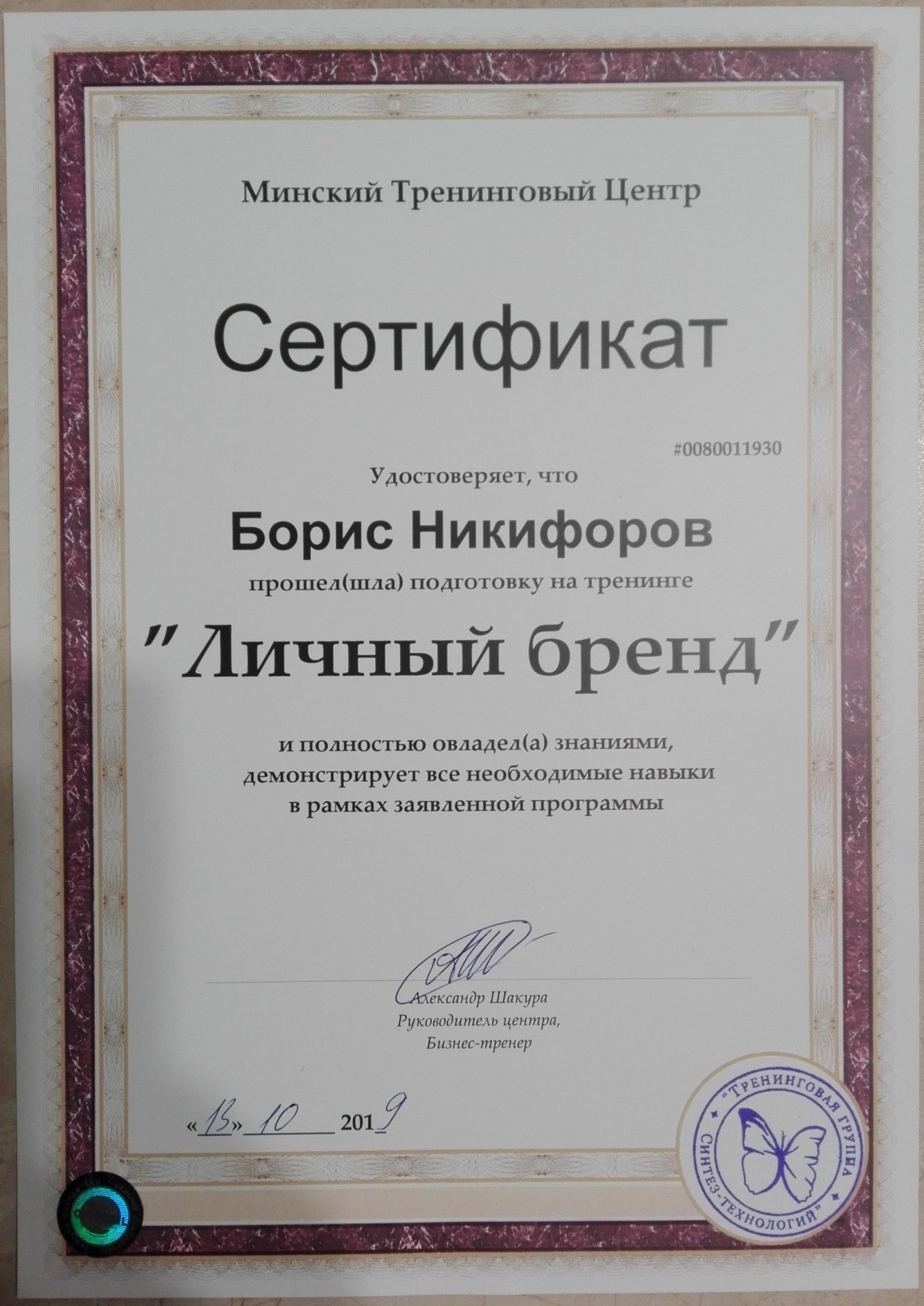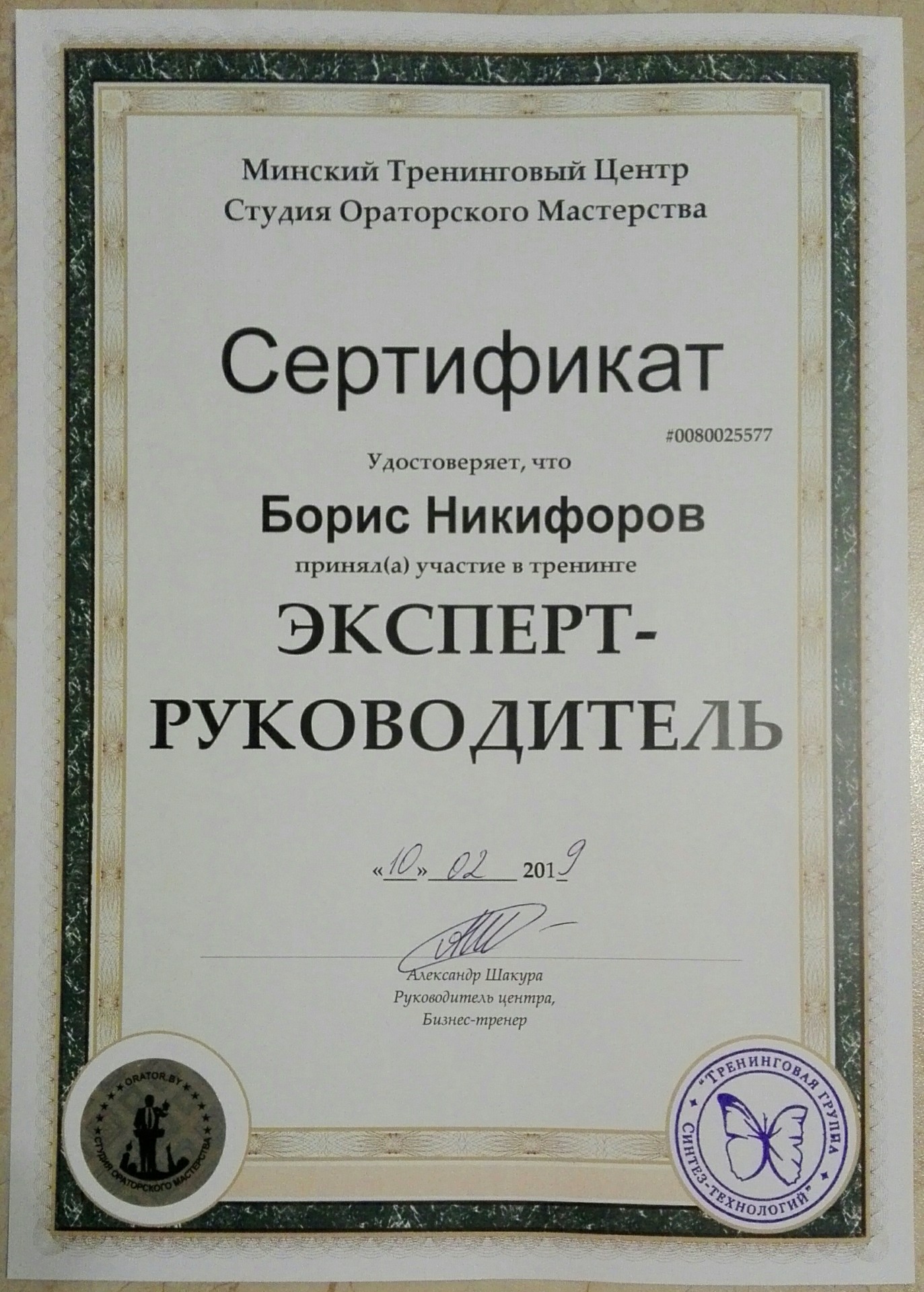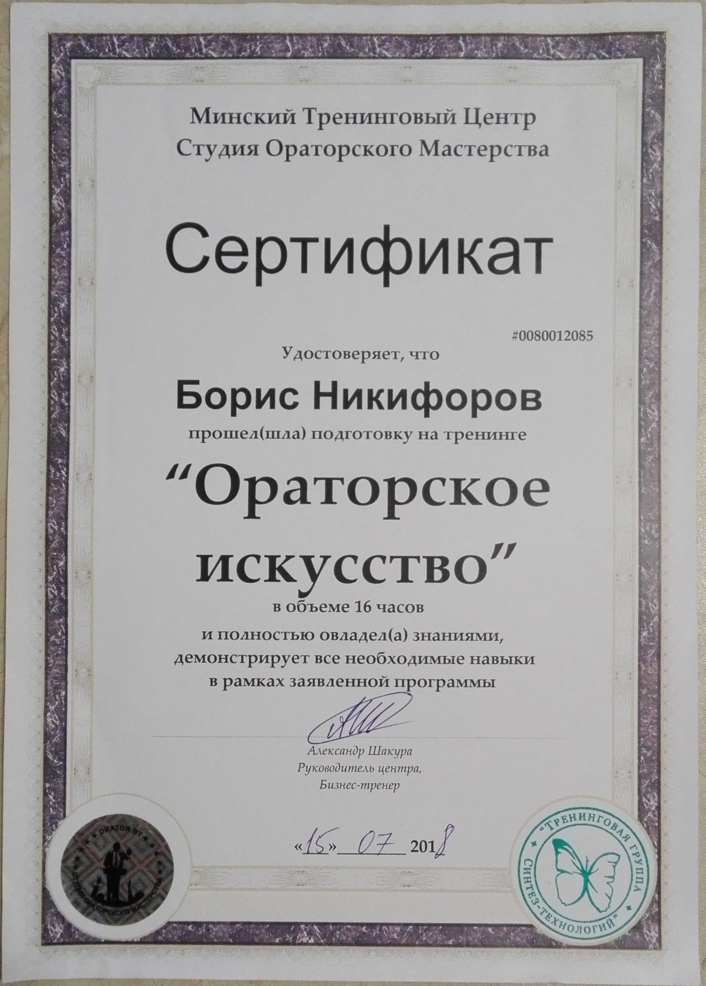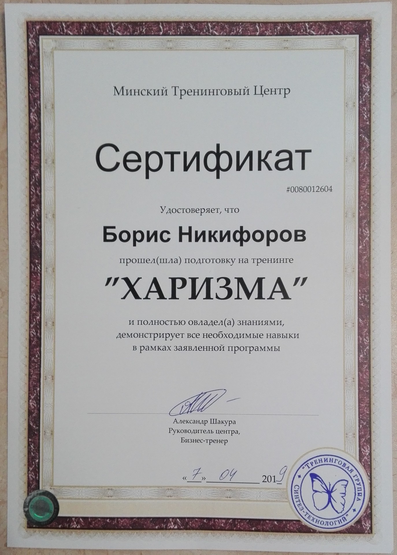 Московский гештальт институт совместно с Минским гештальт институтом. Присвоена квалификация гештальт-практика в организациях.